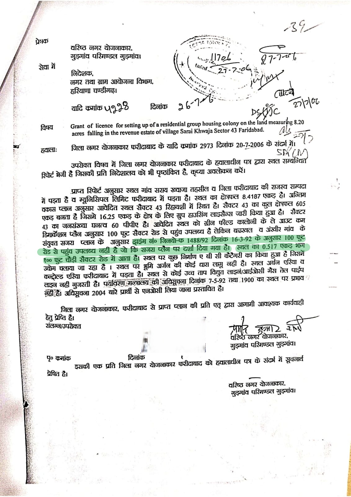 जिला नगर योजनाकार (DTP Planning ) का यह दायित्व है कि वे ग्रीनफील्ड कॉलोनी की जनता के समक्ष यह स्पष्ट करें कि क्या फरीदाबाद डेवलपमेंट प्लान 2031 संबंधित सड़क की चौड़ाई 30 मीटर (100 फीट) होने की पुष्टि करता है। साथ ही, क्या आज की स्थिति में उस 240 मीटर लंबे हिस्से में 30 मीटर ( 100 फीट ) की चौड़ाई मौजूद है, जहाँ मैसर्स SVC & lahari बिल्डर को संबंधित प्रोजेक्ट्स के विकास के लिए लाइसेंस दिया गया है? इसके अतिरिक्त, उक्त सड़क की शेष लंबाई की चौड़ाई की स्थिति क्या है ?