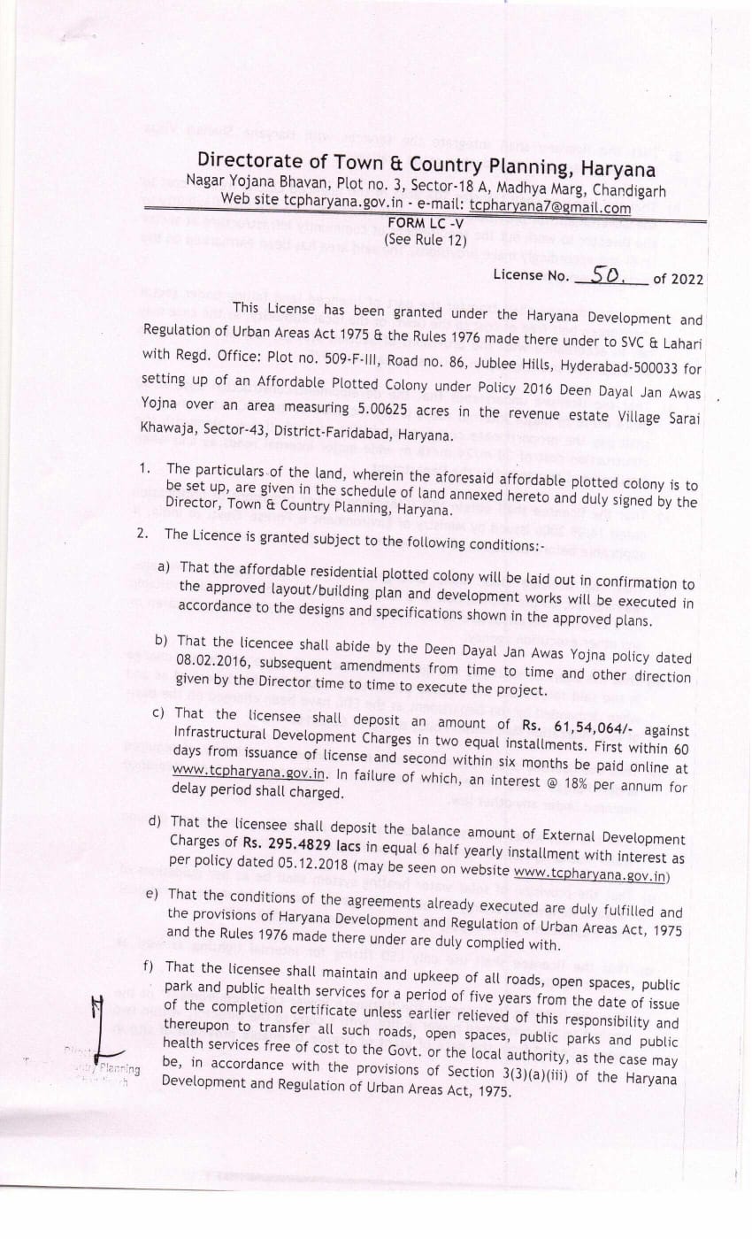 उक्त बिल्डर के लाइसेंस व लेआउट प्लान में भी यह शर्तें उल्लेखित है लेकिन इन नियम व शर्तों की पालना नहीं की गई है अपितु आवश्यक व भौतिक तथ्यों को दबाया गया व छुपाय गया है ।