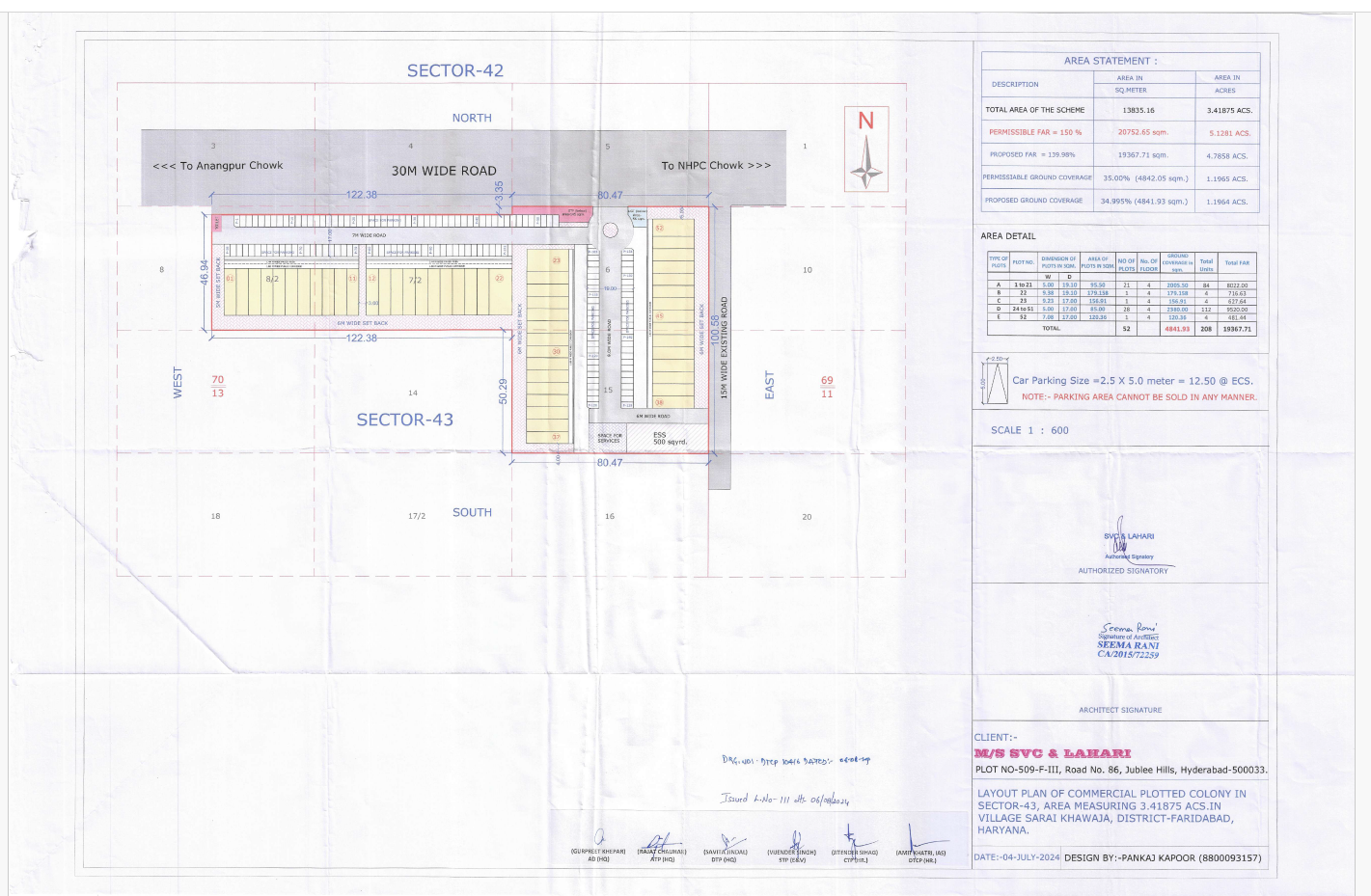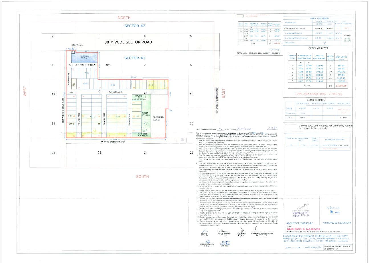 M/s SVC & LAHARI बिल्डर के दोनों प्रोजेक्ट के अप्रूव्ड ले आउट प्लान जिसमे इस सेक्टर विभाजीय मार्ग को 30 मीटर (100 फुट) दर्शाया है :