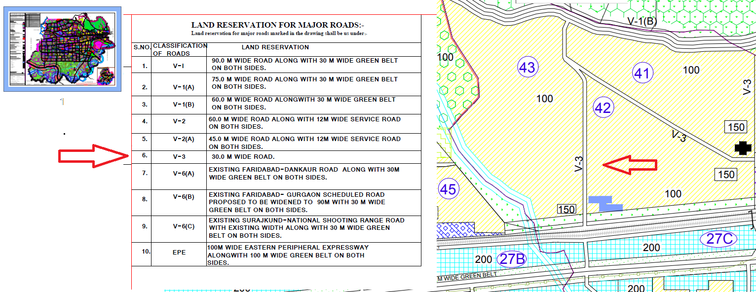 डीटीपी विभाग का अधिसूचित सरकारी नक्शा जिसमे इस सेक्टर विभाजीय मार्ग को 30 मीटर ( 100 फुट ) दर्शाया है :