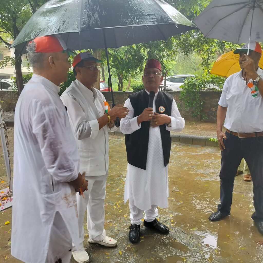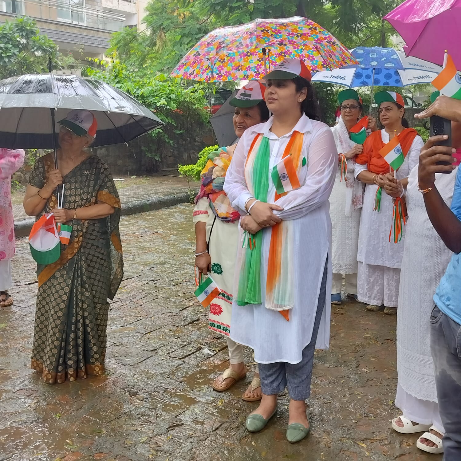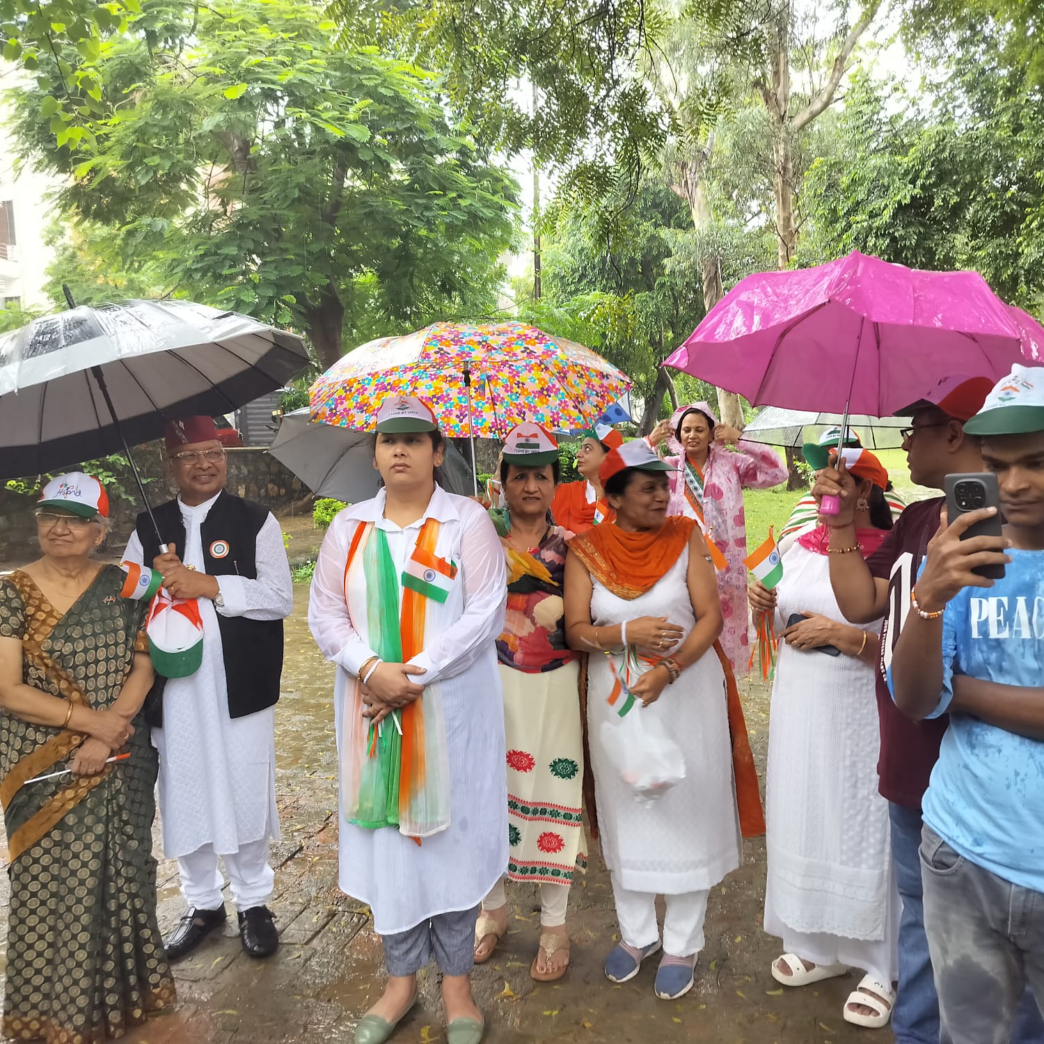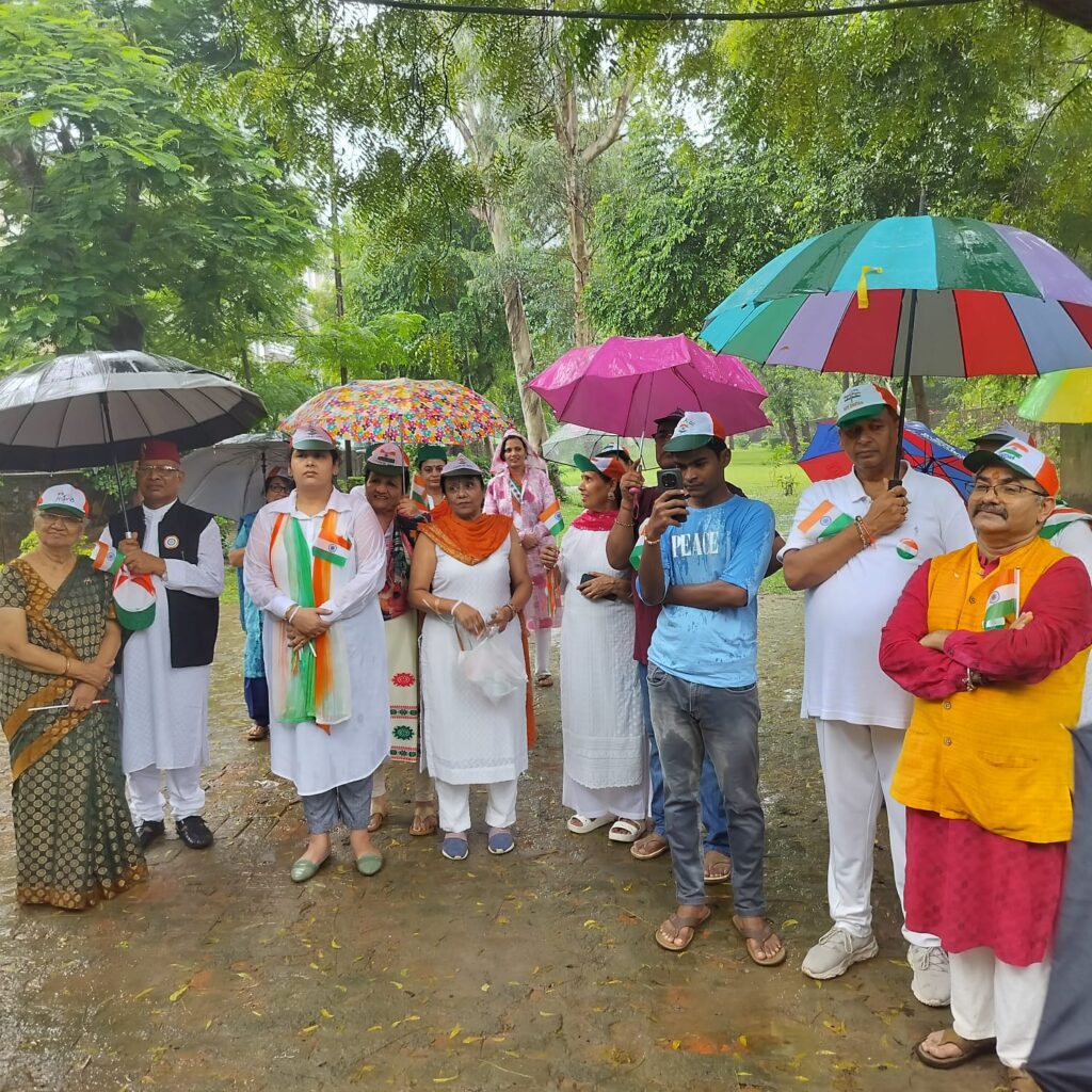 भारी बारिश भी निवासियों के उत्साह और उल्लास को कम नहीं कर सकी । सेना वेटरन्स के सानिध्य में भारतीय ध्वज के समक्ष उपस्थित निवासियों का जोश कई गुना बढ़ गया ।