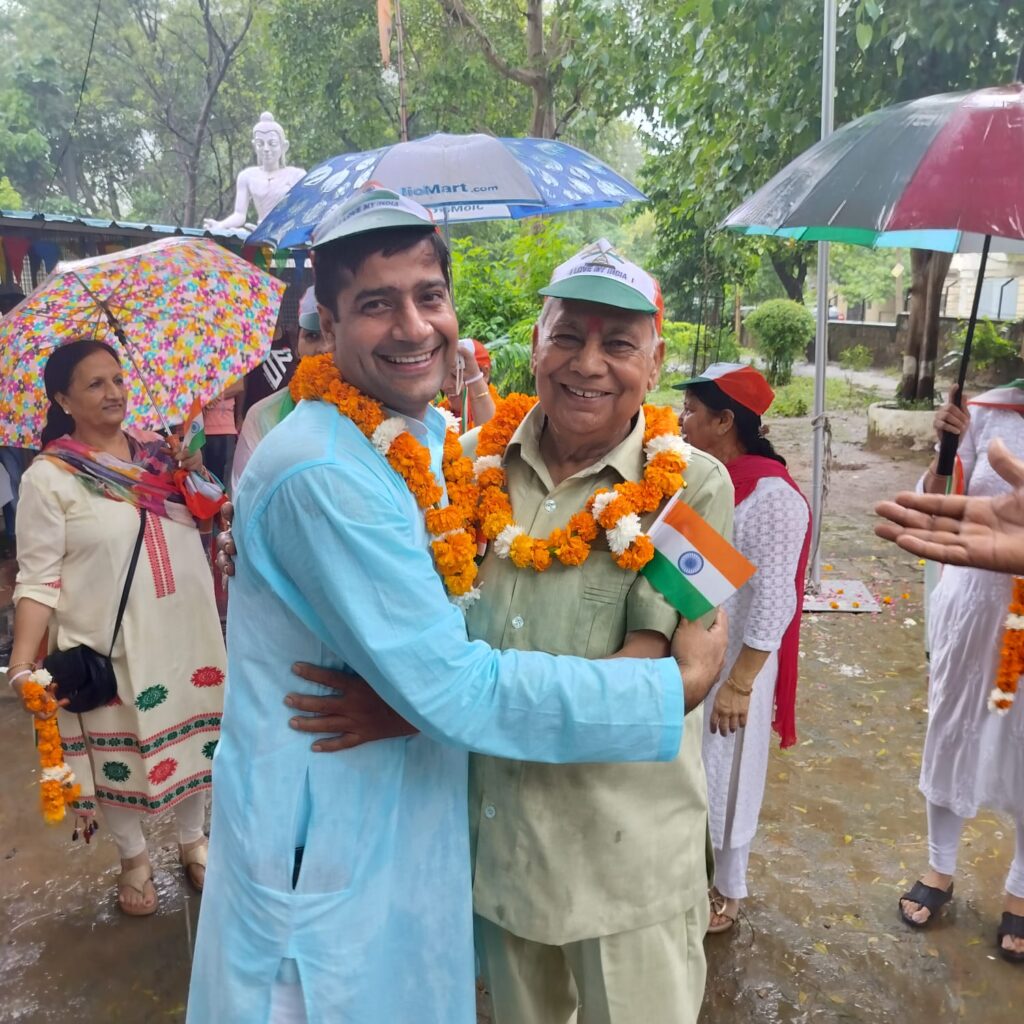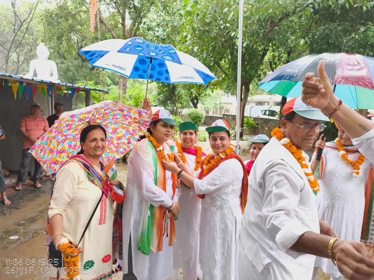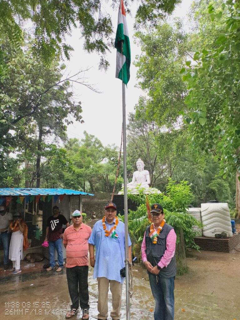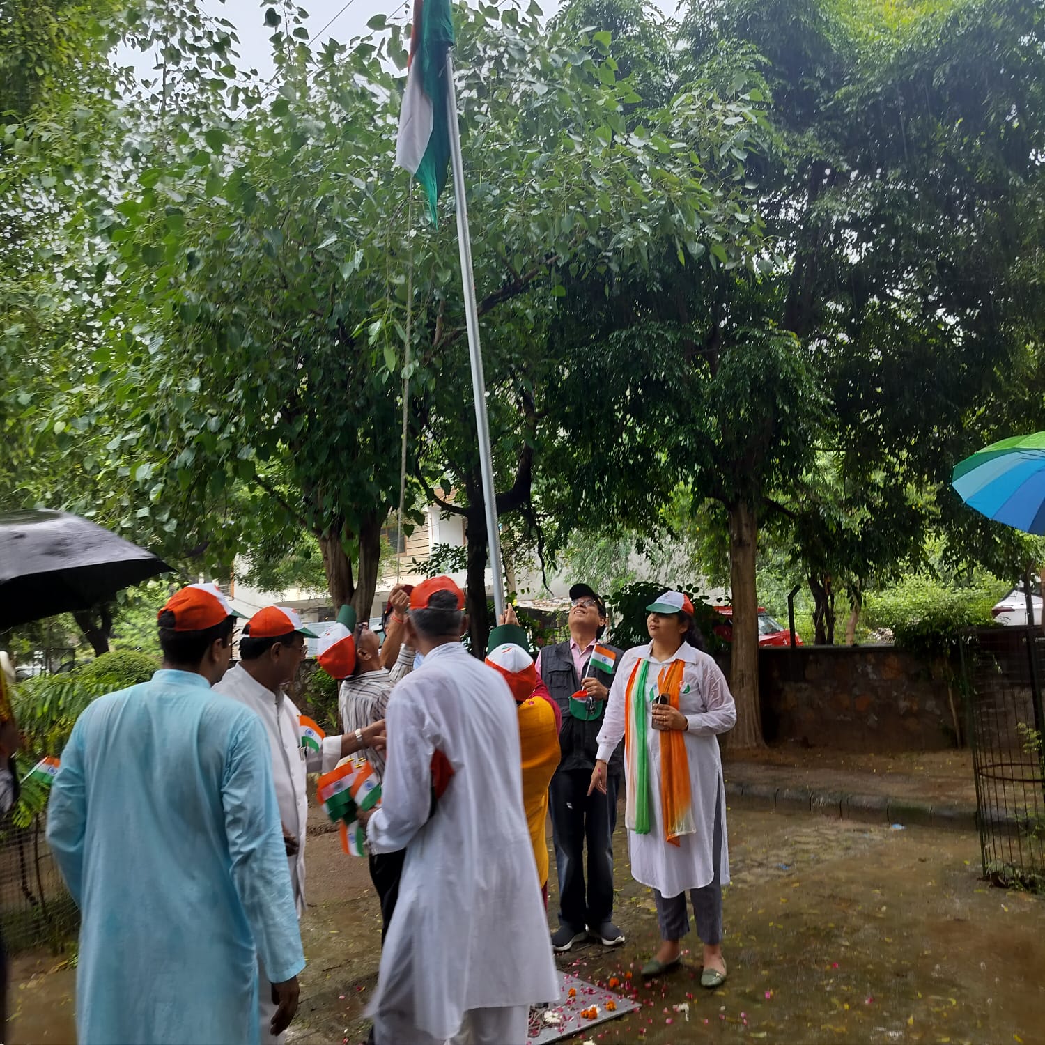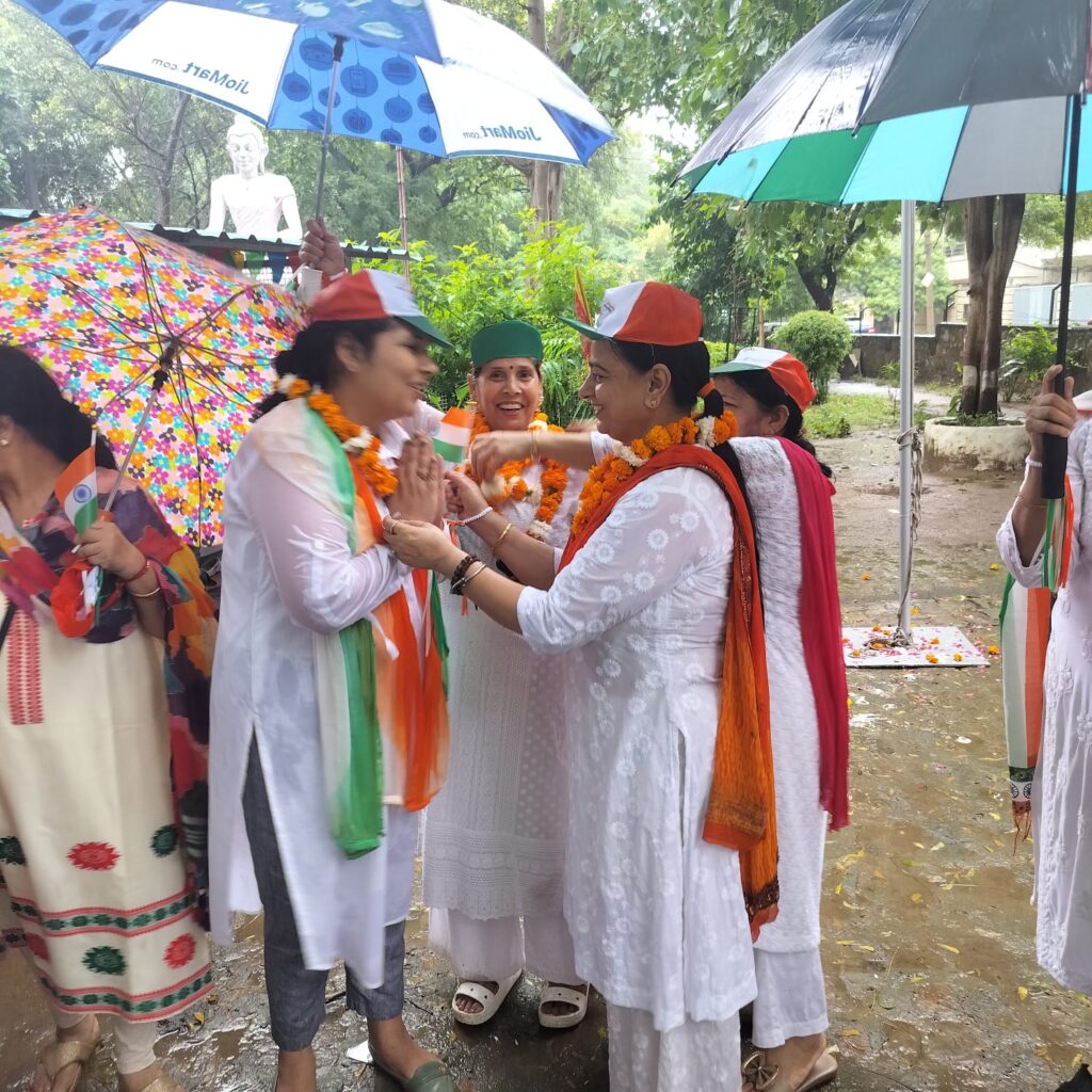भारी बारिश भी निवासियों के उत्साह और उल्लास को कम नहीं कर सकी । सेना वेटरन्स के सानिध्य में भारतीय ध्वज के समक्ष उपस्थित निवासियों का जोश कई गुना बढ़ गया ।