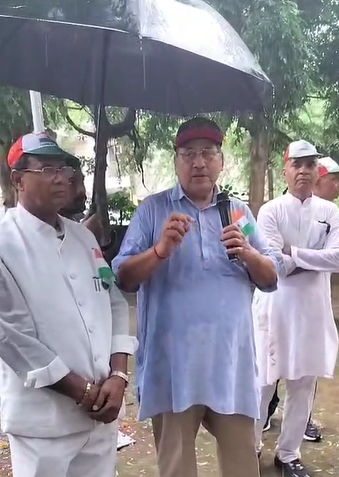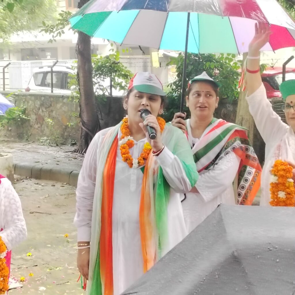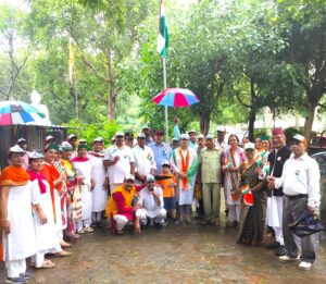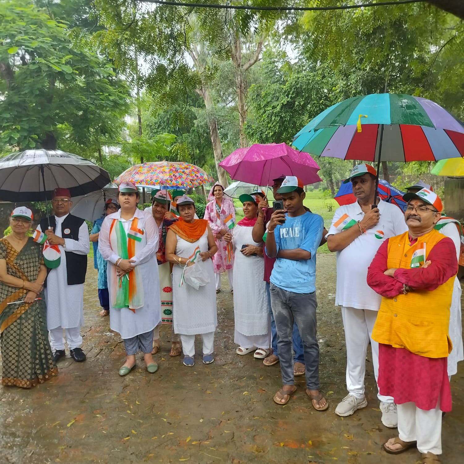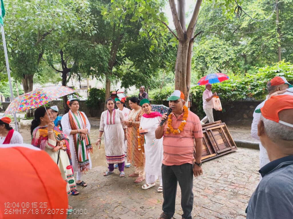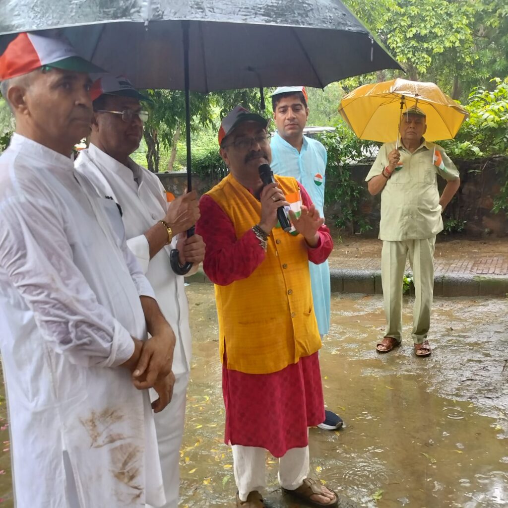 भारी बारिश भी निवासियों के उत्साह और उल्लास को कम नहीं कर सकी । सेना वेटरन्स के सानिध्य में भारतीय ध्वज के समक्ष उपस्थित निवासियों का जोश कई गुना बढ़ गया ।